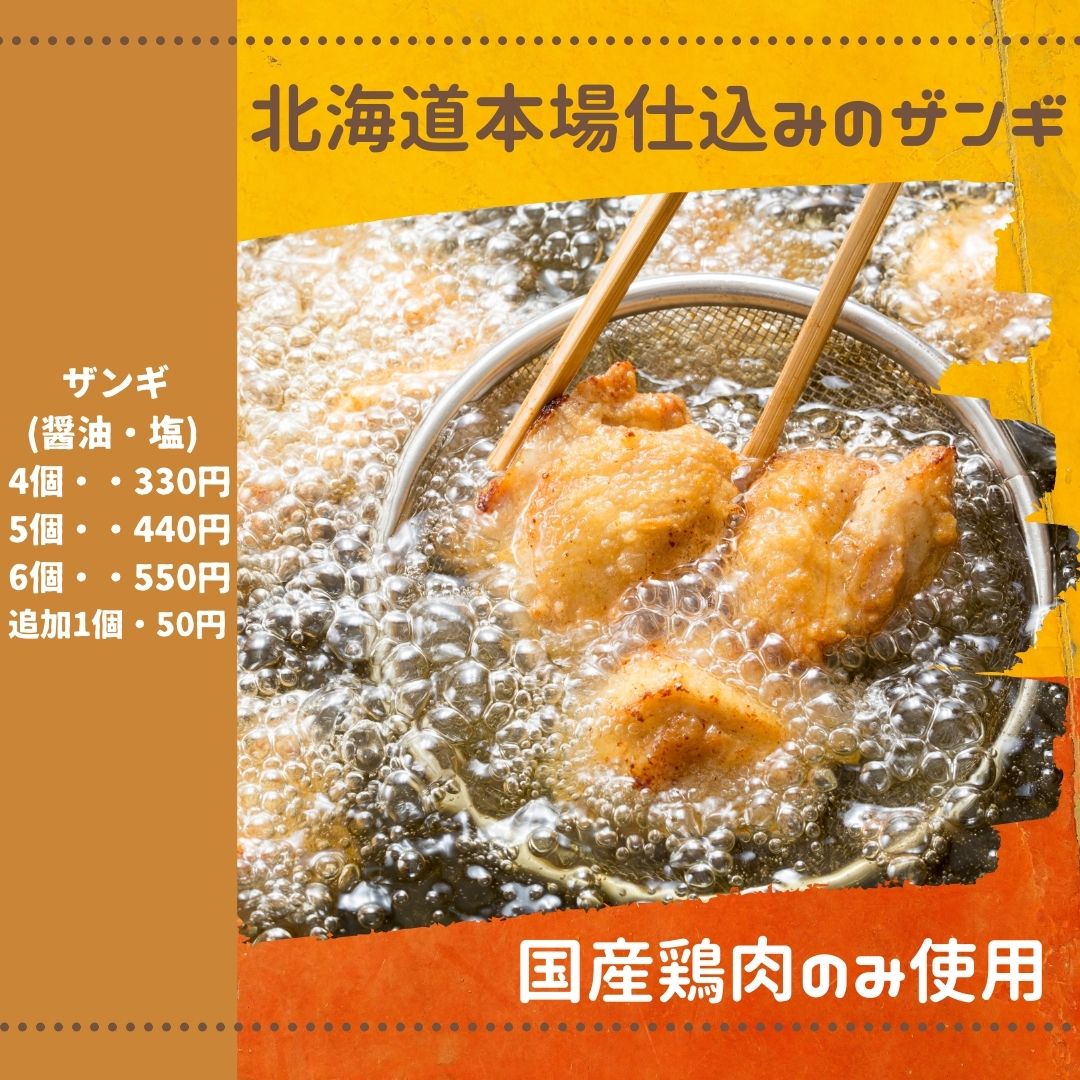 醤油ベースの甘辛いタレで漬け込んだ鶏肉に片栗粉などをまぶしてから揚げる、昔ながらのザンギです。